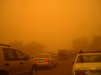 As you will see in these photos, there are some very nice things about this area and some not so nice. These first two pictures are of the bad things … heat and sand. Move your mouse over my car's instrument panel to see the outside temperature!