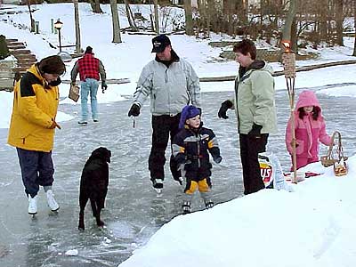 | On Saturday, January 25, 2003, members and guests of the Marinole Lake Association gathered at 6:00 pm on the lake for an ice skating party. |