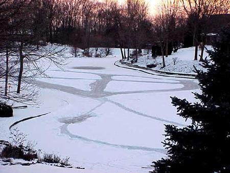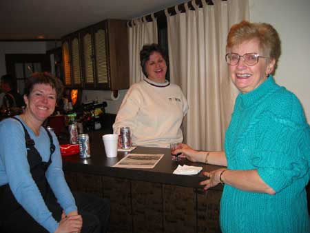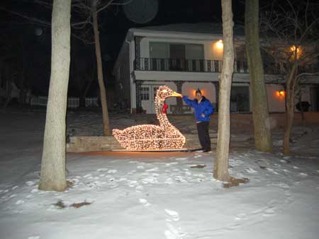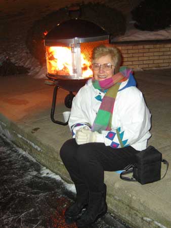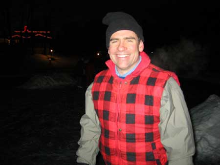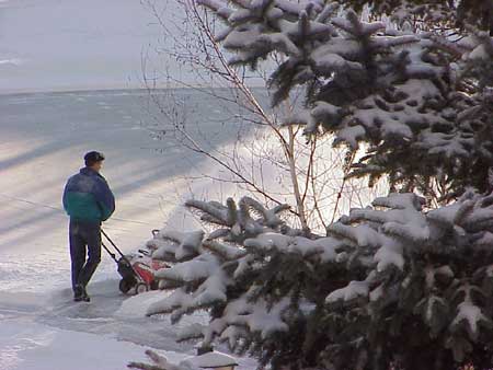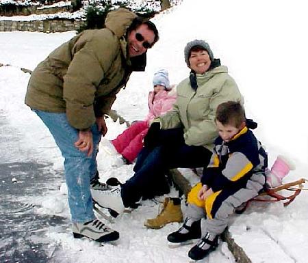 | Two days earlier the Morlands and the Nichols had cleared several paths through the snow on the lake and verified that the ice was thick enough to skate safely. John Valassiades helped with the shovelling for the big event and everyone contributed to the overall success of the evening. |